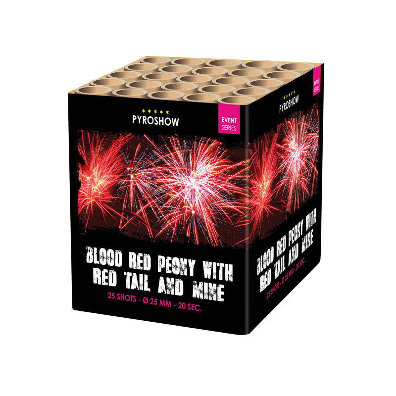 Blood Red Peony w.Red Tail and Mine Goedkoop vuurwerk kopen bij Vuurwerkwinkel Etten-Leur