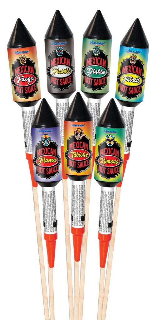 7- delig vuurpijlen assortiment met een bijzonder smaakvol en pittig design.Chili Con Bang Rocket assortment Goedkoop vuurwerk kopen bij Vuurwerkwinkel Etten-Leur