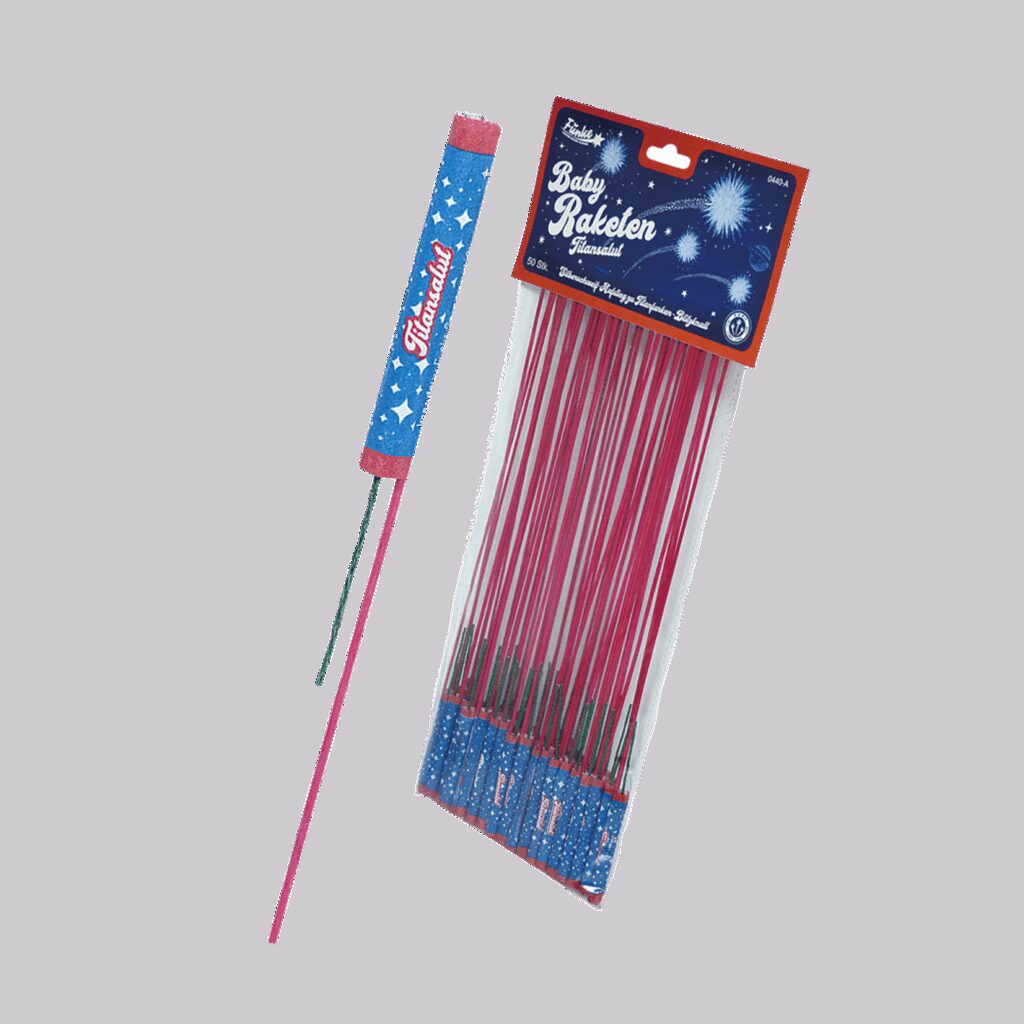 n nBabyraketten met een zilveren staart die opstijgt naar een titanium flash bang.nDit product is verboden in Nederland. n n