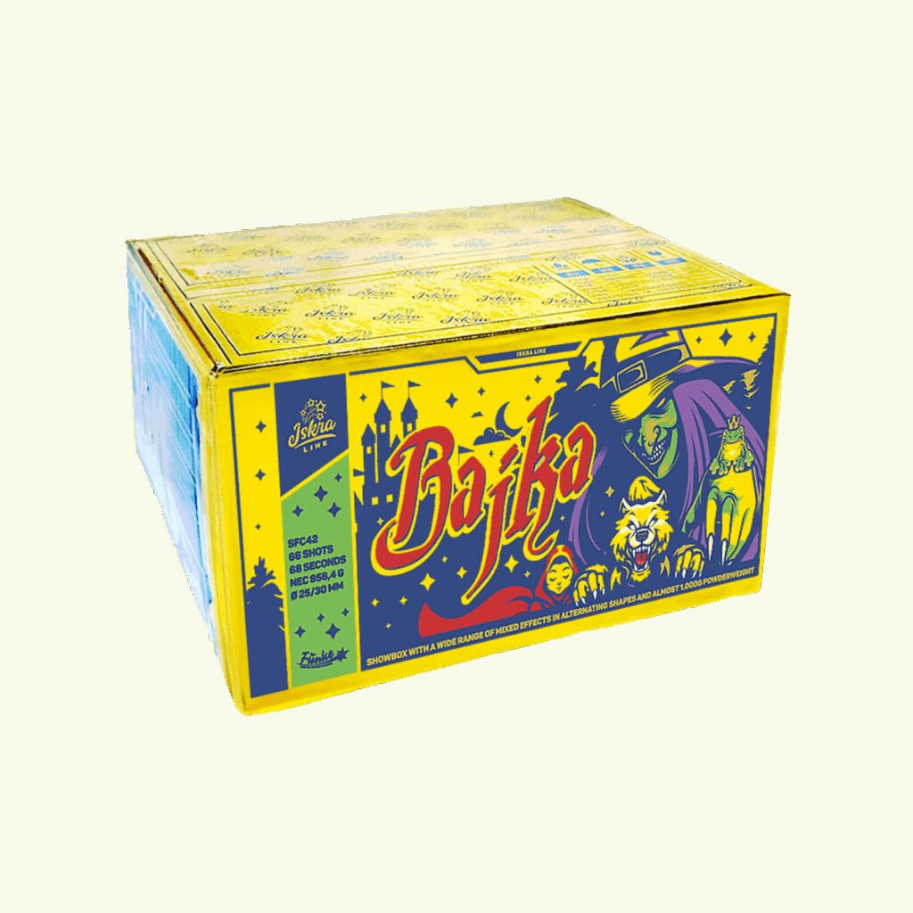 n nShowbox mit einer großen Auswahl an gemischten Effekten in verschiedenen Formen und fast 1.000g Pulvergewicht. n n Iskra Line Bajka 66 shots Goedkoop vuurwerk kopen bij Vuurwerkwinkel Etten-Leur