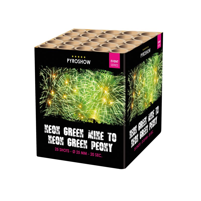 Neon Green Peony w.Green Tail & Mine Goedkoop vuurwerk kopen bij Vuurwerkwinkel Etten-Leur